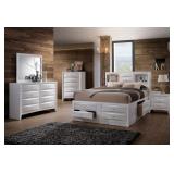 Acme Furniture Ireland Queen Bed with Storage, White. 4 BOXES COME WITH THIS ITEM.The ireland transitional bedroom collection features multi-drawer platform bed with shaped drawer front and brushed nickel hardware. Nightstand with pull-out tray gives you convenience and creative fun life.In Previously Opened Factory Carton Retail $518.00