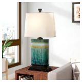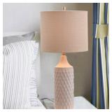 Décor Therapy TL15461 Table Lamp, Caramel. ess is more and the Anabel table lamp is the ideal example. Featuring a simple, yet chic, contoured ceramic base. A round white linen shade keeps the lamp light and fresh feeling. Appears to be new in Original Carton. Please attend the Preview to see the item for yourself. Retail $51.74 EACH