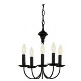 Savoy House Wickham 5 Light Chandelier in Whiskey Wood.Elegant, traditional chandelier style is bettered by a rustic touch in the Savoy House Wickham 5-light chandelier. The black arms and structure are paired beautifully with Whiskey Wood detailing. Appears to be new in retail packaging. Please attend the Preview to see the item for yourself. Retail $506.00 (RT58)