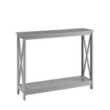 Tony End Table. MAY BE DIFFERENT FROM PICTURE!! Rustic reflections small wooden end table, light gray finish on body, light brown stained cypress wood, in shape with four wooden legs, two equally sized drawers with the herringbone pattern, square-shaped light gray iron handles. Appears to be new in Original Carton. Please attend the Preview to see the item for yourself. Retail $132.99