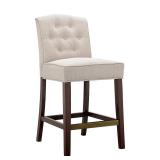 Cormiers Counter Stool. When a well tailored look, without being formal is what you desire, this stool is the perfect fit. The solid birch wood frame features a warm brown distressed finish to complement the light beige linen look upholstery. Appears to be new in Original Carton. Please attend the Preview to see the item for yourself. Retail $248.99