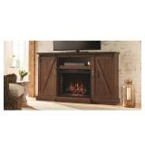 Home Decorators Collection Chestnut Hill 68 in. TV Stand Electric Fireplace with Sliding Barn Door in Rustic Brown
