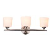 Stylish/transitional wall light perfect for your bath Durable metal construction, built to last Bowed bar design Uses three 60-Watt type A (CFL or LED equivalent) bulbs - not included Assembled dimension: 7 in. L x 25 in. W x 9 in. H Assembly required