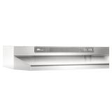 Install as ducted or non-ducted to fit a variety of installation needs Rotary dial controls for easy operation Variable motor speeds help you tackle a variety of venting jobs 220 CFM blower helps quickly remove smoke and cooking odors from the air Top or rear exhaust option lets you connect the ductwork to suit your installation requirements Reusable aluminum mesh filter is dishwasher safe for easy cleaning 75-watt cooktop lighting with protective polymeric lens for easy cooktop viewing (bulb not included) Includes a 3-1/4 in. x 10 in. damper/adapter and a 7 in. round adapter for easy installation Mitered sides and hemmed bottom for safety and good looks
