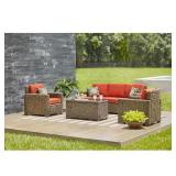 Hampton Bay Laguna Point 4-Piece Brown All-Weather Resin Wicker Patio Deep Seating Set with Quarry Red Cushion