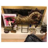 Jewelry including a multi colored diamond ring, 1950/60's 14k white gold ladies Rolex, 18k white gold tanzanite & diamond necklace and more, antique wood carved ostrich carousel animal, 1950's Coke aluminum carousel horse, three carved carousel horses on stands, gorgeous carved leaded glass door bookcase, cloisonne, stacking lacquer tables, Lalique glass, lots of Dorothy Klyver original artwork, Sergio Bustamante welded brass & copper lion, beautiful tables & chairs, lots of clocks, Lenox, dinnerware, Royal Dux, Stangl, rugs, quality women's clothing & shoes like St Johns, Dior, Michael Kors, Salvatore Ferragamo, etc., tilt top tables, stands, beds, dressers, linens, Victorian shaving stand, amazing mirrors, wall decor, bookcases, china cabinets, pottery, glassware, kitchenware, tools, life size santa, vintage slides, electronics, busts, marble top stands, Chinese ceramics, trunks, boxes and the list goes on.........
