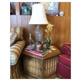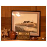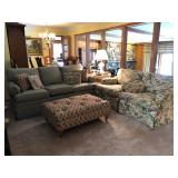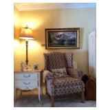 Living Room Ethan Allen Wingback Chair & Ottoman, Ethan Allen Armchairs, Ethan Allen Sofa, Lightwood Side Table, Oil Paintings, Lladro Figurines, Mexican Pottery, Mid Century Fantoni for Raymor Vase, Kem Benson Art Glass Vase, Barsottini, and more.