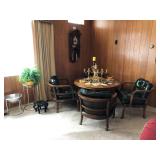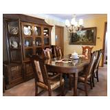 Dining Room Japanese Carved Dining Set and Chairs, Murano Glass Candies, Norman Rockwell Collectibles, Asian Planters, Royal Ironstone China, Spitzer Oil Painting, and more.