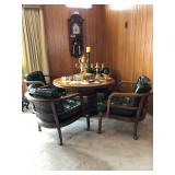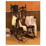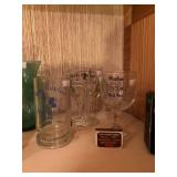 Basement Bar Vintage Barware, Collectible Ashtrays, La Tarraco Vintage Spanish Wine, Coffee and Tea Servers, Antique Dining Table, Brass Fireplace Tools & Andirons, Rocking Chair, Vintage Ice Crusher, Vintage Percolators, Vintage Brad’s Pulley Scale, and more.