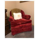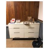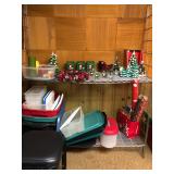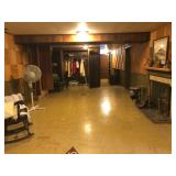 Basement Corner Room Lane Cedar Chest, Metal Utility Shelving, Holiday Decorations and Wrap, Banquet Seating, Plastic Storage Containers, MCM Dresser, Metal Filing Cabinet, Luggage, and more.