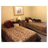 Spare room 2 2 Twin Beds, Dixie Chinoiserie Nightstand, Provincal Style Dresser, Panasonic TV, Framed Art, Womens Hand Bags Including Vintage Leather Coach and Bally Bags, Brighton Purses, Pillows and Linen, Womens Clothing and more!