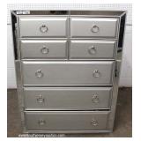 Contemporary 2 Piece Mahogany Finish Leather Upholstered King Size Bed and Dresser with Mirror – auction estimate $300-$600