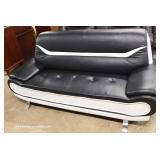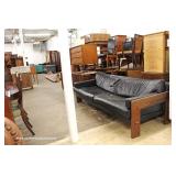 Mid Century Modern Wood Arm Black Leather Sofa by “Craft Associates Inc.” – auction estimate $300-$600