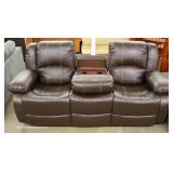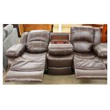 Contemporary 3 Piece Brown Leather Sofa, Chair and Loveseat with Cup Holders – auction estimate $400-$800