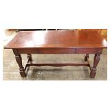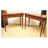 PAIR of Mahogany Banded and Inlaid Rope Carved 2 Drawer Library Tables – to be sold separate – auction estimate $200-$400