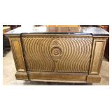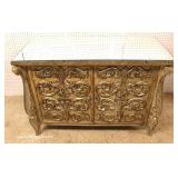 Burl Mahogany Marble Top Demilune 2 Door Server with Applied Bronze – auction estimate $200-$400