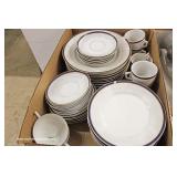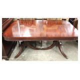 Contemporary Mahogany Large Dining Room Table with Metal Stretcher Decorator Base and 10 Upholstered Dining Room Chairs – Table approximately 130”x 50” – auction estimate $400-$700