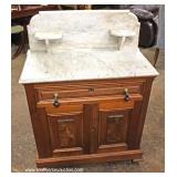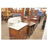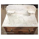 ANTIQUE Mahogany Inlaid French 2 Drawer 2 Door Marble Top Server – auction estimate $200-$400