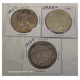 Selection of U.S. 1923 Silver Peace Dollars – auction estimate $20-$50 each