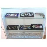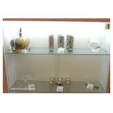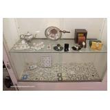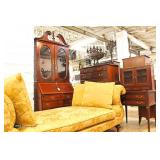 Mahogany French Inlaid and Banded Button Tufted Crystal Cabinet – auction estimate $200-$400
