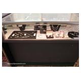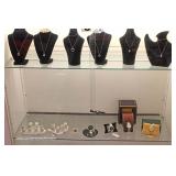 Tray Lot of Sterling including Earrings, Locket, Ring and Spoon Brooch – auction estimate $30-$80