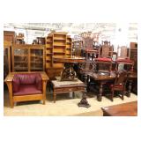 9 Piece Highly Carved and Ornate Oak Depression Refectory Dining Room Set in the Original Finish– auction estimate $1000-$2000