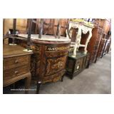 French Style Mahogany Inlaid Marble Top 5 Drawer Chest – auction estimate $100-$300