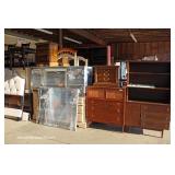 ANTIQUE 5 Part French Style Mahogany Inlaid and Banded Buffet with Mirrored Curio Top – auction estimate $200-$400