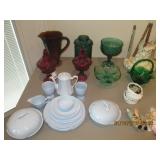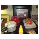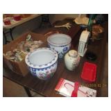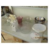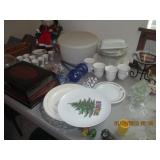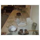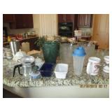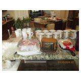 Several quality China Sets, Pots/Pans, Kitchenaide mixer, Fireplace tools, Glassware, dinner plate sets, casserole bowls & dishes, Framed Art, Mirrors, Picture Frames, many lamps, Throw Pillows, Comforters, Linen towels, sheets, kitchen towels, Area Rugs, ironing boards, vacuum, GE Electric Griddle, Ice Cream Freezer, candles, tablecloths, blankets, throws and so much more.