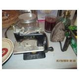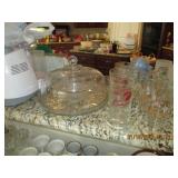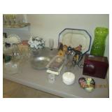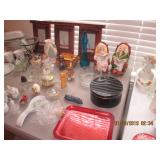 Huge Tiara Glassware Collection, vintage chairs, Milk Glass, Pyrex, slide projector, Four Crown South Hampton China set, Brown dyed muskrat stole, porcelain dolls, vintage collectible Avon dolls, Huge collectible vases, Afghans, Smith Corona typewriter, Civil War collapsible cup 1861-1865, nice 12” knife w/ scabbard from Mexico, vintage costume jewelry, Vintage Tiara liquor decanters, Sears Kenmore sewing machine in cabinet, Brothers sewing machine, Singer mini salesman sample sewing machine, Hunt County Album Book, Masons Book, Vintage Firehouse Bells, Hanson 25# Scale and so much more.