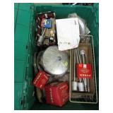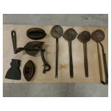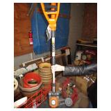 Hardware/Misc.: Broad axe; cherry pitter; sad irons; blacksmith vise; Kitchen Aid mixer & grinder; wood chairs; movie cameras; plastic & metal toys; new light bulbs; plumbing & electrical supplies; cleaning products; flower pots; sprinklers; many lawn & garden items; Christmas items; new wheelbarrow handles; broom heads; new White Mt. ice cream freezer parts; stove pipe; boxes of nails; door & cabinet hardware; Correlle dishware; crockery bowls; igloo water coolers; canning jars; bikes; lg. amt. assorted NOS hardware & misc. items.