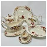 The lady of the house used a different set of china every single day: Lomonosov, Royal Doulton Coronet, Wedgwood Charnwod, Aynsley Cottage Garden, Noritake Fleurgold, Copeland Spode Fairy Dell, Royal Crown Derby Kedleston, Spode Kingswood, Wedgwood Beaconsfield, Mason Mandalay Blue Ironstone, Royal Doulton Stanwyck, Royal Albert Moss Rose and finally, Haviland Limoges Sylvia Cream. There’s a dining table and breakfront to house them all. And there are outdoor tables and chairs as well for summer events.