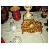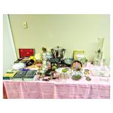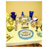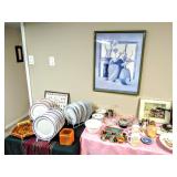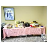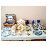 Décor Large Potted Plant In Mosaic Pot, Small World Rhythm Clock, Vases and Glassware, Jewish Themed Collectors Plates, American Sweetheart Metal Base Sherbet Bowls, Decorative Pottery, Handmade Pillows, Crystal Lamp and much more