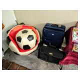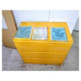 Furniture Nice Side Table With Storage, Flat Screen TV Stand, Kimball Bedroom Set With Entertainment Stand, Queen Bed, 2 Night Stands and Dresser, Several Bookstands/Shelves, Sectional Sofa, Everwear Trunk, Solid Wood Coffee Table and End Table by Lane, Regalo Baby Gate, Soccer Ball Swivel Chair, French Provincial Tall Boy Display Dresser, Maytag Centennial MCT Dryer, Maytag Bravas XL MCT Washer, 2 Upholstered Sofas, Luggage From Ricardo, American Tourister and others, Refrigerator