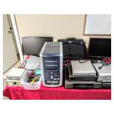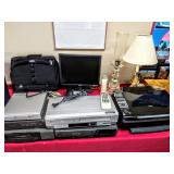 Electronics Sony Blu-Ray Player with Wifi, Epson printer, Cyber-home DVD 300, Millennium In View Video Pass thru, Sylvania DVD/VHS Combo Player, 2 VHS Players, HP Pavilion 725n Computer, AOC Flatscreen Monitor, Data Transfer Switch, Centronics, Dell Flat Screen Monitor, Hundreds of Cords, Wires, and adapters for electronics and computers.