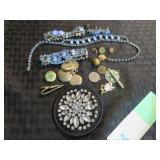 VINTAGE RHINESTONE JEWELRY HAS MATCHING SET - BRACELET, NECKLACE AND EARRINGS AND OTHER VINTAGE ITEMS