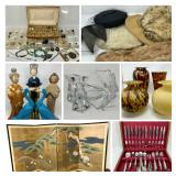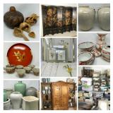 Enjoy the selection offered in this auction. The lady of the house had a penchant for interior decorating and amassed a collection of pottery and crystal along with a large selection of Asian inspired pieces. A massive Asian room screen, Japanese tabletop screens, art and more.