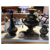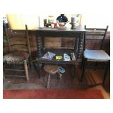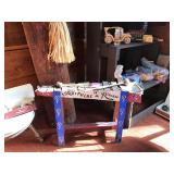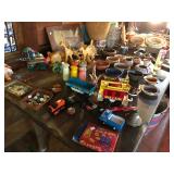 Federalist dining table, 3 other dining tables Barley twist library table, other occasional tables and chairs, including wicker and balloon back chairs 2 wardrobes; book cases; dressers; lamps; foot stools; chests Jacobean revival sideboard; credenza; art; mirrors; lawyer stack book case Persian and Guatemalan mementos Hospital bed Vintage toys, games and books Office supplies Vintage sewing machines 1996 Honda Accord with new battery Washer, dryer, upright freezer Kitchen implements, dishes, and small appliances Books: paperback novels; hardbacks; coffee table; reference—totally eclectic tastes! Also, vintage magazines: Look, Life, Time, National Geographic, etc. Music: stereos, records, CDs, tapes Art; mirrors; lots of other decorative items Wood shop contents Hand tools; lots of other stuff related to tools; table saw Antique brass and copper pots So very much more!