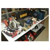 Tools: Hitachi Router w/Table, Ryobi Router, Ryobi Biscuit Jointer, Skil Disk Grinder, Dewalt Reciprocating Saw, Skil Drill, Dremel, Ryobi Buffer, Ryobi Jig Saw, Porter Cable 12v Lithium Drill, Johnson Level, Shop Vac, Hitachi Compound Miter Saw,