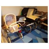 Four large English style Prams in impeccable and unused condition. (Two by Silver Cross). Emmaljunga and Marmet.