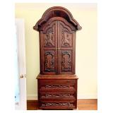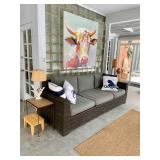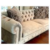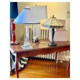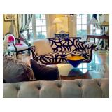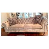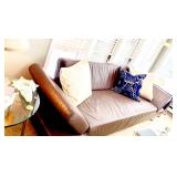 Furniture: Mahogany dining room set, tufted sofa, neutral loveseat, poster bed, mahogany chests, leather club chairs, 8 walnut dining throne chairs, and empire sofa, walnut console table/wardrobe, Mediterranean wardrobe, Arhaus chairs, country French wardrobe, leather daybed, club chairs, abstract glass coffee table/end tables, mirrored coffee table, glass top table/chairs, Victorian settee, Queen Anne desk, more.