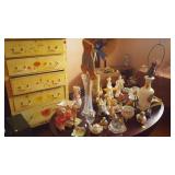 · FURNITURE-- Beautiful Waterfall Bedroom Set including Bed, Dresser, Chest of Drawers, Vanity and Night Stand, 2 desks, Stands, Chairs, Large Wicker Chair, Round Oak Table with Claw Foot Base, Set of Oak T Back Chairs, Trunk, Book Case with Built In Desk, Coffee Table, more. · APPLIANCES /EQUIPMENT -- Wheel Chair and Handicap Equipment · ANTIQUES/COLLECTIBLES— Lots of Glass and China, Fenton Glass, Depression Glass, Carnival Glass, Blown Glass figurines, Dolls, Wine Press, Clocks, Pictures, Prints, Collection of Adirondack Posters, Jewelry, Linens,, Crocks, Records, Tins, Advertising, Christmas, Baskets, Avon, Stage Costumes, Steins. · HOUSEHOLD— Usual household including kitchenware, cookware, dishes, glassware, linens, tools, garden tools, pictures, prints, lamps, Silver Plate, holiday and more. Clean House with Wide Variety. Something for everyone. |