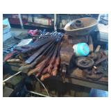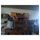 Items to be sold: Antique Beds, Antique Dresser, 2 Antique Wardrobes (Chifferobes), Antique Tables and Chairs, Side Tables, Lazy Susan Table, Refrigerator, Cast Iron, Old Rockers, Stove, Washer and Dryer, Sewing Machine, Three Tier Table, Piano, Small Secretary, Sofas, Small Desk, Bookcases, Trunks, Wooden Boxes, Old School Desks, 15 Cu. ft. Chest Freezer, Old Pump Organ, Enamel Pots & Pans, Old Store Scales, Carpenter Box, Radial Arm Saw, Table Saw, Crocks, Ladder, Tools, Old Jars, Gasoline Sign Pole, and lots and lots more!!