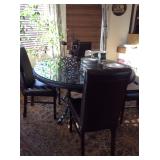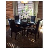 Round glass kitchen table with leather chairs