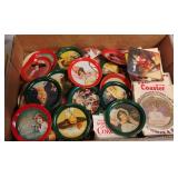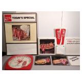 Thermometers, Clocks, Trays, Cards, Tins, Signs, Ornaments, Stickers, Toys, Clothing, Patches, Bottles, Wood Cases, Bottle Carriers, Glasses, Dishes, Ash trays, Banners, Menu Boards, Restaurant Items, Key Chains, Mirrors, Dealer / Salesman Materials, Calendars, Pens, Pencils, Knives, Bottle Openers, Coke Letterhead & Paper Items, Collector Glasses and Much Much More. There were two(2)—12 X 20 storage buildings stacked floor to ceiling of Coke and other soda collectables and memorabilia from the 60s-80s—Still Unpacking—Will be selling in Box lots and groups in order to sell all the items.