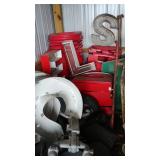 Gulf Bowser Gas Pump, Phillips 66 Porcelain Sign, Texaco Ahead Sign, Franklin Motor Oil Sign, Gas Station Cans, Cigarette Signs, Ford Porcelain Sign, Joe Camel items, Middle Tennessee Stoneware Crocks, Lanterns, Adv. Calendars & Tins, Metal & Plastic Lunch boxes & Thermoses, Whiskey Displays, Can Neon Store Letters, Crocks, Pottery, Glassware, Milk Bottles, Old Metal Medical Cabinet, Sewing Machine, Tobacco Basket, Metal File Drawers, Shoe Irons, Jacks, Cast Iron Skillets and Kettles, Dolphin Handle Sad Iron, Hand Forged Trade Axes—Buggy Steps, Steel Wagon Wheels & Decorative Farm Tools, Country Store Bench, Old Well Pump, Red White & Blue Slot Machine (needs work) Large Dairy Queen Plastic Sign, Victorian Flue Covers, Children’s Books, Barbie, Matchbox Cars, Hot Wheels Super Grand Prix Race Set in Box