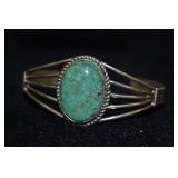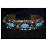 500 E Wyaco Signed Turquoise Cuff Bracelet Sterling