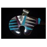 1/5" Wide 501 Sterling/Opal Inlay Lizard Pin 1.5" x 1.5" 502 Sterling Flower Motif Cuff with Turquoise 1" 503 Amber and Sterling Pendant 2" x 1.25" 504 Figure Motif Sterling Belt Buckle 2.25 x 1.5" 505 Seed Bead and Turquoise Nugget Necklace 30" 506 Royston Green Turquoise Sterling Ring Size 8 23 mm 507 T Singer Signed Sterling Bear Cuff Bracelet Almost 1 " Wide 508 Sterling and Coral Flower Motif Ring Size 7 3/4 32MM 509 Mother of Pearl Sterling Earrings 42MM Clip On 510 Hoop Dancer Hopi Sterling Pin 2" 511 Dishta Signed Sterling Inlay Coral Turquoise Pin 55 MM 512 Garnet Sterling Ring 7 3/4 30 MM 513 Sterling and Gold Bear Motif Circle Ring Size 6.5 May match 514 514 Cuff Sterling /Gold Bear Motif Thin Delicate 7mm 515 Sterling Feather Turquoise Pendant 46 MM 516 Turquoise Sterling Heart Clip on Earrings 20 MM 517 Sterling Buffalo Pendant 1.25" 518 Unusual TT Marked Sterling Cuff Bracelet 43 CM 519 Sterling and Treated Turquoise Earrings Clip on Feather Motif 60 MM Overall 520 T Singer Sterling/Gold Bear Pendant 70 MM x 47 MM 521 Sterling/Malachite Earrings Clip on w/Conversion 26 MM with leaf Motif 522 F.L. Begay Sterling Unique Designed Cuff Bracelet 30 MM Wide 523 Lone Mountain Turquoise Brian Tso Ring 6 3/4 Size Ring 524 Sleeping Beauty MJ Sterling Cuff 8 Stones 18 MM 525 Sterling Squash Blossom Earrings Coral Clip On w/ Conversion 50 MM 526 Dry Creek Turquoise Sterling Earrings 17 MM 527 Frank Guerro Sterling Sugalite Cuff 30 MM 528 Sterling Inlay Clip Earrings 45 MM Sugalite/Turquoise/Mother of Pearl/Onyx 529 Green Turquoise 5 Stone Sterling Cuff Bracelet 20 MM 530 Red Coral Olive Heishi Necklace 32" Virgina Aguilar Santo Domingo Original $ 1088 531 3 Strand Pipe Stobe Necklace Reyes Chavez Original Turquoise, Jet, White and Orange Coral Santa Domingo 532 Sterling Figure and Maze Earrings Clip On 27 MM 533 Blue Topaz and Leaf Motif Earrings Jim Spencer 26 MM Sterling 534 10 Strand Seed Necklace Native Strung Silver Clasp 535 Navajo #8 Turquoise Sterling Cuff Bracelet 30 MM 536 Turquoise 5 Stone Drop Pendant Necklace Sterling 20" 537 Heavy Sterling Cuff Bracelet with Bear Claw Design 26 MM 538 50 Strand Liquid Silver Sterling Necklace 29" 539 TT Marked Sterling Purple Spiny Oyster Bracelet 13 MM Cuff 540 Heishi Necklace 14 Strand Necklace 30" 541 Spiney Oyster with Turquoise Accent 20" Necklace 542 Artist Marked Blue Topaz/Sterling Pendant Necklace Necklace 28" Pendant 31 MM 543 HNL Marked Sterling Earrings Bear Claw 12 MM 544 Artist Stamped Lapis Ring Sterling Size 9 18 MM 545 Sterling Turquoise Pipe Beads Necklace 19" Strand Doubled Matching 546 546 Pipe Turquoise Bead and Sterling Earring 1.25" matching 545 547 Sterling Horse Necklace 25" Largest Horse 65 MM 10 smaller horses 30 MM each Match 549 548 Sterling Hopi Waves Cuff Bracelet 10 MM Wide Marked MLK 549 Sterling Horse Earring Clip On Match 547 28MM 550 Set Heishi and Turquoise Necklace 10 Strand 28" Matching earrings 40 MM 551 Stabilized Slab Green Turquoise Earring 40MM Clip on w/ Conversion 552 T & R Sterling Leaf Pin 50 MM 553 5 Strand Liquid Silver Sterling Necklace 24" 554 Incredible Sleeping Beauty 5 Stone Cuff Bracelet Intricate Design Inside and Out Must See 20 MM Wide Sterling 555 Jim Spence Marked Blue Topaz and Sterling Earring 40 MM Matching 556 556 Jim Spence Sterling Blue Topaz Pendant w/chain 35 MM 18" 557 Inlay Sterling Ring Marked AY Size 5 3/4 27 MM Coral, Lapis, Spiney Oyster, 3 Types Turquoise, Malachite 558 Alabaster Bear Necklace with Turquoise Nugget 35 MM Bear Sterling Necklace 26" 559 Coral Intricate Sterling LB Marked Cuff Bracelet Heavy with 5 Stones 20 MM 560 Dream Catcher Earrings with Turquoise Accent 40 MM Overall 561 Double Sided Bear Pendant Inlay Sterling Turquoise, Jet, Mother of Pearl, Sugalite One side Turquoise, Jet, Coral, Mother of Pearl other side 562 Signed Zuni Petit Pointe Ring Irma S Sterling Size 6 563 Sterling Turquoise Pendant Marked 60 MM x 30 MM 564 Hopi Bear Pin Marked 50 MM 565 Sleeping Beauty Turquoise Ring Sterling Size 8.5 33 MM 566 Hammered Sterling Cuff Kokopelli Bracelet Marked WA 18 MM 567 Size 7 Turquoise Ring Sterling Flower Motif 568 Large Amber Sterling Pendant 58 MM x 42 MM 569 Turquoise Sterling Ring Size 7 Flower Motif 33 MM 570 5 Coral Stone Inset Sterling Cuff Bracelet 25 MM 571 Sleeping Beauty Turquoise Pendant Winged Necklace Sterling, Leaf Motif 43 MM Pendant 46 MM Winged Leaf Marked LB 572 Royston Turquoise Earrings Sterling Clip on with Conversion 28 MM 573 2 Sets of Sterling Earrings Squash Blossom/Birds 574 JR Marked Sterling Fetish Necklace Bear Pendant 5 Additional Animals 26" Necklace Bear Pendant 50 MM x 40 MM 575 Cuff Sterling Bracelet Inlay V Shape Malachite, Mother of Pearl and Jet 576 18K GOS Multi Gem Ring and Diamond Size 7 577 Sterling Tri Color Hoop Earrings 28 MM 578 Garnet/Diamond 10KT Earrings 17MM 579 Vera Wang Sterling/Pearl Necklace Sterling LC White Sapphire 580 14 Kt GOS Amethyst Pendant Necklace 30 MM CL White Sapphire 581 Sterling Pearl Ring CL White Sapphire Size 7 582 Amethyst Necklace Sterling 22 MM CZ Accents 583 14 kt GOS Pearl LC White Sapphire 15 MM 584 14 kt GOS Gen Citrine/ LC White Sapphire Necklace Pendant 21 MM 585 14 KT Gold Diamond and Amethyst Necklace 7 MM Wide 18 MM Pendant 586 10 kt White Gold Size 7 Swarovski Zirconia 7 MM 587 10 Kt Gold and Purple Jade 7.5" 588 10 Kt Gold Blue Topaz Bracelet 7.25" 589 18 KT GOS LC Opal/Sapphire Bracelet 7.25" 590 GOS Peridot Bracelet 7" 591 Sterling Tricolor Hinged Bangle 592 Genuine Blue Topaz/ Peridot Ring Size 7 593 Vera Wang Sterling Diamond and Pink Pearl Necklace Pendant 594 Blue Quartz Pendant Necklace 90 MM Not Sterling 595 Sterling Blue Topaz Choker 16.5" 3 Stones 596 18 kt GOS Mutli Stone Hinged Bracelet 7.25" Matches 597 597 18kt GOS Multi Gem Hoop Earrings 25 MM Matches 596 598 Sterling CL Opal and Sapphire Earrings 12 MM 599 Sterling Teardrop Pearl Earrings 15 MM 600 GOS Multi Stone Heart 30 MM 601 Sterling Swarovski Pearl Pendant Necklace 602 Vera Wang Sterlin