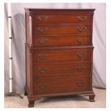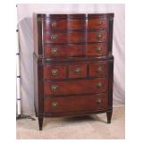 Drexel mahogany chest on chest; 662-1633 - fluted columns - (finish as-is; missing piece of molding on back foot) - 37.5x22x52.5