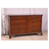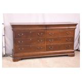 Drexel mahogany 8 drawer double dresser; 662-1635 - fluted columns - (finish as-is) - 55x21.5x35.5